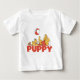 Puppy Plays T-shirts, tote bags, stickers, mugs, and more with an adorable puppy lying on his back dressed in a red shirt playing with a red and white beach ball!