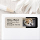 With this cute label design, you can attach this adorable puppy to all your outgoing mail. With an elegant black and textured background, this little guy will bring a little class with him where ever he goes.