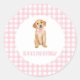 Preppy puppy golden retriever birthday with pink bow and pink plaid.