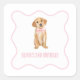 Preppy puppy golden retriever birthday with pink bow and wavy frame.