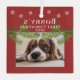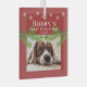 Puppy`s 1st Christmas Red Pine Snowflakes Photo Glass Ornament. Festive red background with white snowflakes and pine branches. Add your dog`s name, year and photo.