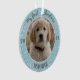 A delightful decoration for your Christmas tree, this ornament features your puppy on a light blue background with silver glitter. Just add your puppy’s photos, name and year of birth for a unique keepsake.