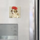 Puppy wearing a red bow magnet