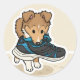 Sticker featuring a cartoon image of a sheltie puppy holding a shoe