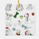 This fun Christmas illustration features adorable doggies decorated with lights, Santa hats and other festive details, accompanied by colorful paw prints and bones. This image is perfect for adding a cheerful, canine touch to Christmas celebrations. Ideal for animal lovers looking for a unique and charming decoration.