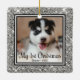 This lovely Puppy's 1st Christmas photo ornament with a silver glitter edge, the words "My 1st Christmas", your dog's name and the year will look beautiful on your tree. You'll cherish it and enjoy taking it out every year to put on your tree.