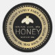 Eye-catching gold and black label with gold dotted border and stylised honeybee. Honey printed in embossed style gold gradient text. Text is written in black on textured gold border.