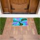 A Doormat with an artwork of a colourful, blue and purple swirl abstract, with the word Welcome. You can delete or change the word Welcome. --- This image is copyrighted by me, the Photographer.