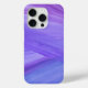 A modern and unique iPhone 15 pro case with a trendy watercolor painting with lines and stripes in shades of purple, blue and lavender.