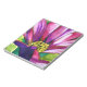 with design from original watercolour painting by artist Sacha Grossel of close up, macro style purple African daisy flower. This floral design is bright and colourful of purple and white petals with yellow centre against a green background with botanical inspiration for flower lovers everywhere.