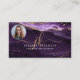 Modern, stylish professional business card with purple agate and marble with faux gold glitter veins and sparkle accents personalised with fancy handwritten script monogram initials with swashes, name and your photo. ASSISTANCE: For help with design modification or personalisation or if you would like coordinating items, contact the designer BEFORE ORDERING via the Zazzle Chat MESSAGE tab or email makeitaboutyoustore@gmail.com.