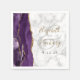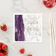 These elegant modern wedding napkins feature a purple watercolor agate design trimmed with faux gold glitter. Easily customize the black date on a gray and white marble background, along with the names of the bride and groom in gold colored handwriting calligraphy over a large, pale gray ampersand.