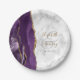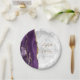 Purple Agate Marble Gold Script Wedding Paper Plate