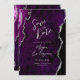 Purple Agate Silver Script Wedding Save the Date Invitation