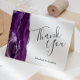 This elegant modern wedding thank you card features a purple watercolor agate border trimmed with faux silver glitter. The customisable text combines the words "Thank You" in charcoal grey handwriting script and the names of the bride and groom in italic font on a white background.
