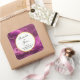 Wedding thank you stickers with an elegant abstract design. Dark purple amethyst colour with ribbons of gold nestled between layered strata. Rich and beautiful design. Layered over top is a white circle frame with a faux gold foil border, with your personalised text inside.
