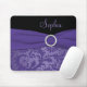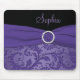 This elegant looking purple and black damask mousepad has a matching faux ribbon and crystal brooch. Customise it with your own name, monogram, or other text.