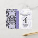 Customise this pretty black and light purple damask wedding table number card with a purple ribbon design. Personalise it with the bride and groom's name, last name and wedding date on the back and front of the table card. Design © Chrissy H. Studios, LLC. All Rights Reserved.