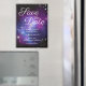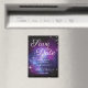 Lovely purple galaxy cluster space photo with a save the date invite with a lovely calligraphy style.