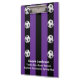 This clipboard is a unique and fun thank you gift for the soccer team coach! The purple and black stripe pattern with white lettering is very bright and eye catching. It is decorated with soccer balls. Your coach will love it! Sample text has room for 3 lines, which can easily be modified or deleted. All Rights Reserved © 2014 Alan & Marcia Socolik.