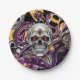 Purple and Black Sugar Skull Halloween Party Paper Plate