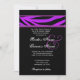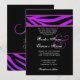 This design with its purple and black tiger print print peeking out from behind a black background mixes contemporary and classic elements, and makes an elegant wedding invitation. Matching RSVP card and more zebra bridal items are shown below.