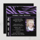 Purple and Black Zebra Print Graduation Invitation. Send your graduation invitations in style! Personalise with your own photo and information. If you need help, please email shutterbug600@yahoo.com