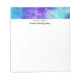 Notepad with a cosmic abstract background. Swirling vibrant colours of light blue, pink and purple. White stars scattered around.