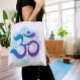 Purple and Blue Om Symbol Mandala Flower White Tote Bag