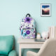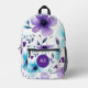 Check out the amazing features of this Purple and Blue Flowers Print Cut Sew Backpack: