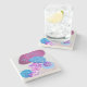 The coasters are gorgeous, a quality feel and heavy weight. They look like a precious archeological find. A rustic stone juxtaposed with a modern floral black and white print. I like the way the print goes slightly imperfect on the cut stone edges giving them a kind-of natural beauty.
