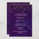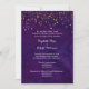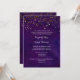 This elegant yet modern wedding invitation suite has a dark purple watercolor background with a scattering of faux gold glitter flecks cascading from the top and white text.