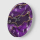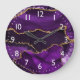 Purple and Faux Gold Glitter Marble Agate Large Clock