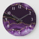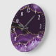 Purple and Faux Silver Glitter Marble Agate Large Clock
