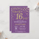 16th Birthday Invitation with Purple and Gold Glitter Diamond Background. Gold Confetti. Kids Birthday. Boy or Girl Birthday. For further customisation, please click the "Customise it" button and use our design tool to modify this template.