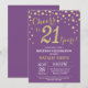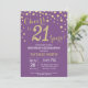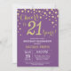 21st Birthday Invitation with Purple and Gold Glitter Diamond Background. Gold Confetti. Adult Birthday. Male Men or Women Birthday. For further customisation, please click the "Customise it" button and use our design tool to modify this template.