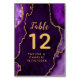 This elegant and glamourous table number wedding sign features a purple agate marble background with faux gold glitter accents. The text combines handwritten script and modern sans serif fonts for a classy and sophisticated look. This will be perfect for autumn fall and winter weddings.