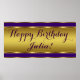Elegant purple and gold birthday party banner poster. This beautiful purple and gold birthday banner is easily customised for your event by simply adding your text in the font style, size and colour of your choice. You can also change the background colour to whatever shade you need.