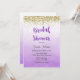 Bridal shower invitation with gold glitter look design and ombre purple watercolor background.