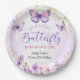 Purple and Gold Floral Butterfly 1st Birthday Paper Plate