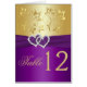This reversible purple and gold floral table number card can be displayed as is, or you can flip the card inside out to have the table numbers visible on both sides of the table. You MUST change the number "12" to each of the table numbers you need, then add each one to your cart, come back and repeat the process until you have as many individually numbered cards in your cart as you need. If there are any additional matching items you require, please email me your request to niteowlstudio@gmail.com.