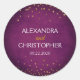 Wedding Couple and Date Faux Metallic Gold Foil Romantic Hearts Confetti Envelope Seal Stickers on Purple Background which are perfect for a Modern and Elegant Wedding Reception.The custom Envelope Seal Stickers allow the ability to update the bride and grooms name and wedding date.