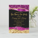 This elegant and glamourous New Year's Eve party invitation features purple and gold faux glitter glam tears on a black background. The text combines handwritten script and modern sans serif fonts for a classy and sophisticated look.