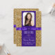 Pretty purple and gold glitter graduation announcement. This beautiful purple and gold graduation announcement is easily customised with your photo and event details in the font style and colour, and wording of your choice. You can also move the ribbon or delete them on this elegant purple and gold graduation announcement.