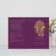 This elegant design, called Purple and Gold Glitter Indian Wedding, has a purple background. On the front there is a gold glitter style border design with Lord Genesha in the centre to ward off any obstacles. Towards the bottom is the couple's name in gold. The back has a purple background with your text in gold. This set has invitations, save the date cards, response cards, thank you cards, table number cards, wine labels, wedding programs, and many more day-of wedding stationery pieces, favours, and gifts to coordinate. All elements are printed on our high quality products, they do not include any real gold, jewels, embossing, or other textile elements. All designs are copyright Noteable Expressions, Inc. All rights reserved.