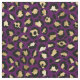 This bold and beautiful animal print design has a purple background with black and gold leopard spots. The spots are similar to cheetah or jaguar print.