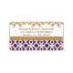 Elegant, stylish and beautiful french Moroccan tile inspired return address labels with a repeating jewel toned purple hue and gold geometric pattern design and gold hued french baroque style floral flourish border. Our upscale and luxe look personalised address stickers are perfect for a formal Moroccan, Arabian Nights or Aladdin themed stationery set. Design © Chrissy H. Studios, LLC. All Rights Reserved