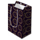 Celestial themed gift bag features gold illustration of combined sun and moon faces on eggplant purple background