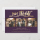 Elegant purple and gold wedding 4 photo save the date cards with modern calligraphy. Easily personalise this card with your images and wedding details including a wedding website.