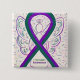The awareness pin features the painting of a purple and green awareness ribbon on custom button pins. The green and purple awareness ribbon colour means support for anal cancer, combination of lyme disease and pain/ lupus/ fibromyalgia, hemiplegic migraines, and rare disease Schizencephaly. Let this green and purple awareness ribbon help bring awareness to these causes!
